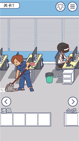 1、点清洁工回座位玩游戏;BE:点垃圾桶。