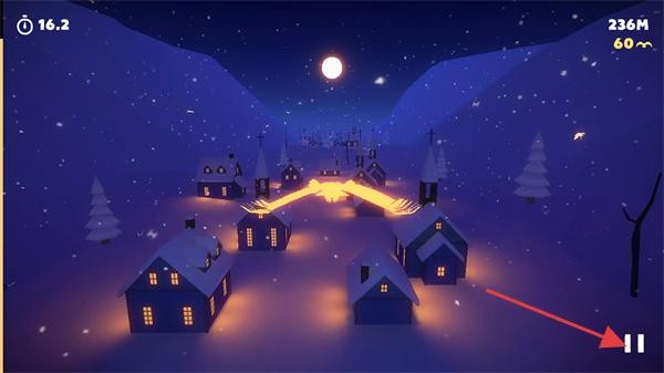 1、操控飞鸟在雪地村庄场景飞行,留意右上角数值,探索环境。