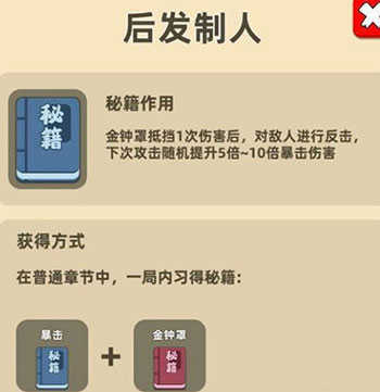 攻略二、饰品选择:优先选择更需要的秘籍如:战斗大师、东风剑法、巨浪剑法、攻击力大小、暴击伤害(本人是优先战斗大师和东风剑法、巨浪剑法的)
