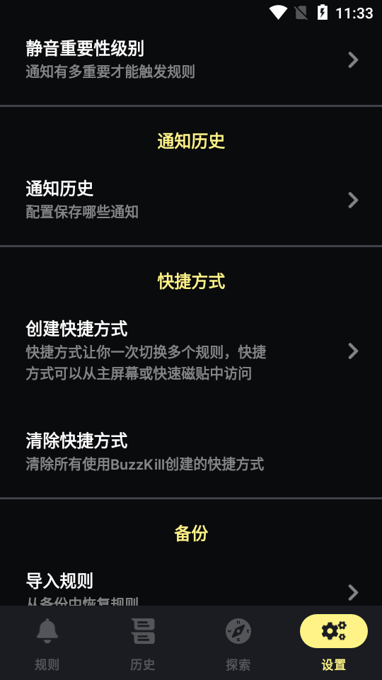 buzzkill还可以对不同应用的通知进行分类管理,让所有消息看起来都很清晰。要是我们不小心漏看了某条通知,还能查看通知历史记录,从中找到已处理或忽略的通知。此外buzzkill通知管理软件还可屏蔽广告!