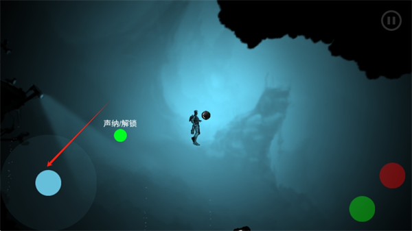2、绿色按钮表示声呐探索,用于打开箱子和探索地形(可知道附近哪些敌人和哪些东西要捡取)
