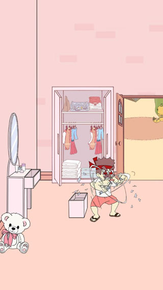 5、拿走房顶上的红色内裤让右边蹲在地上的小朋友穿上