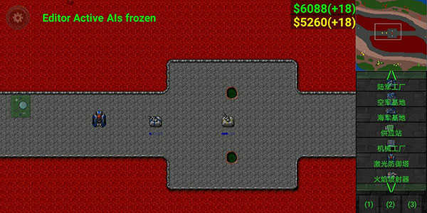 2、命令(指挥中心):是一方势力的象征,不可建造!可发射导弹攻击附近的敌人(海陆空);还可以提供资源—10$/次;能生产“建造车”。在生存模式中,如果“命令”被摧毁则被视为游戏失败,但在战役模式中却不会视为失败。