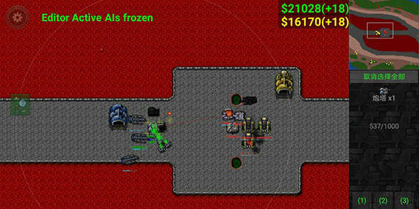 炮塔:需要500元,只能攻击一定范围内的地面敌人。也可再花费600元,升级至2级(顶级)。这神器性价比比相当高,可建在基地里防守,也可以抢资源时,作为守卫神器,也可以建在关键道路上干扰敌人前进。建造成本低,单体能力强大,ai一般只会小规模攻击,多建造几个能欺负ai。