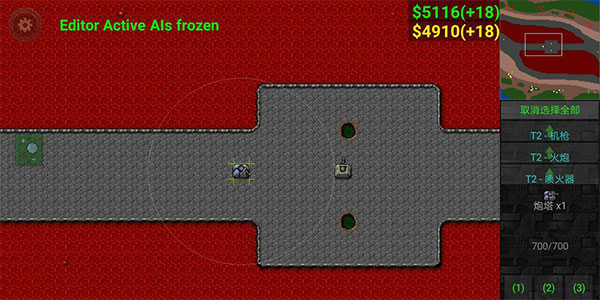 3、炮塔:需要500$,只能攻击一定范围内的地面敌人。也可再花费600$,升级至2级(顶级)。这神器性价比相当高,可建在基地里防守,也可以抢资源时,作为守卫神器,也可以建在关键道路上干扰敌人前进。建造成本低,单体能力强大,ai一般只会小规模攻击,多建造几个能欺负ai。