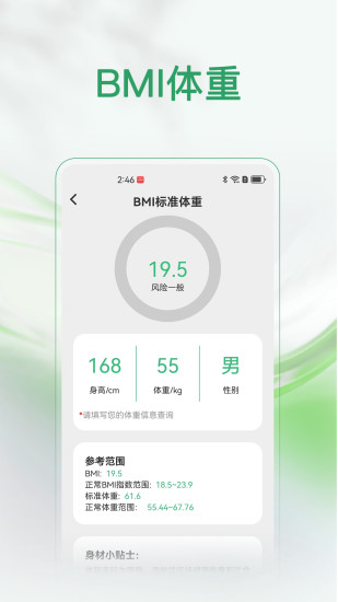 4. 输入身高、体重、性别,点击“查询”就能获取数据。