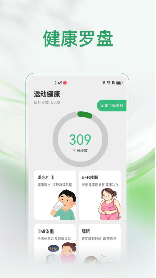 健康罗盘app是一款可随时守护你身体健康的掌上健康管理助手。健康罗盘安卓版的主要功能包括记录步数、喝水打卡、体脂检测、体重记录、睡眠监测等,随时打开手机就能查看你的身体数据和各项指标。健康罗盘软件通过连接外部设备实时检测体脂率,提供专业的体脂分析,让你能快速查看自己的体脂率是多少!