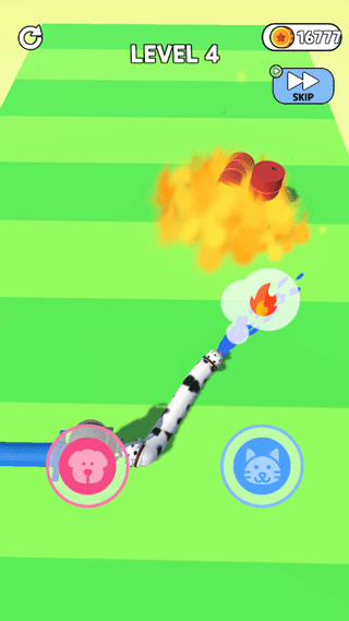 1、游戏需要控制连接在一起的猫头和狗头,完成每一个奇特的关卡。