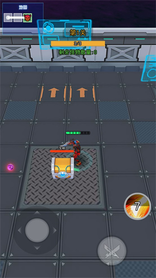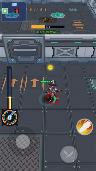 3、游戏的操作非常的简单,左边是控制铠甲的方向,右边则是攻击了;