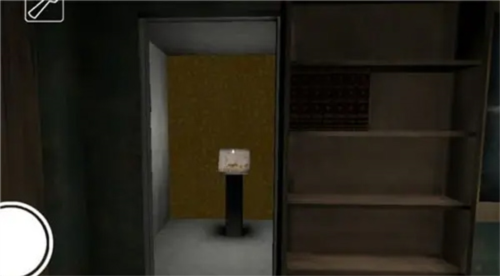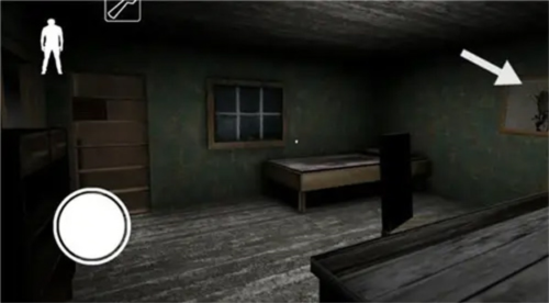 这是出生房,靠近床时点击右上角可以躲进床下,衣柜里也可以躲进去,床头柜左边的抽屉里有三行红字:Leavethishouse(离开这个房子),右边的抽屉里一般不会刷东西。房间里只有花瓶和摆花瓶的桌子能被推倒,花瓶可以拿起扔在地上。在Day2(第二天)时出生房的门会被锁,所以需要扔花瓶或推倒桌子吸引奶奶过来,然后躲进床下或衣柜等奶奶离开。