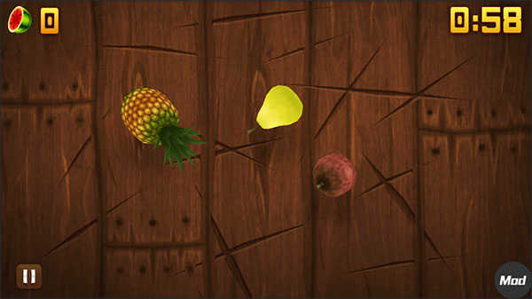特效:在街机和禅境模式中会使水果额外反弹一次(说白了,就是没有切到的水果再重新抛一次。)