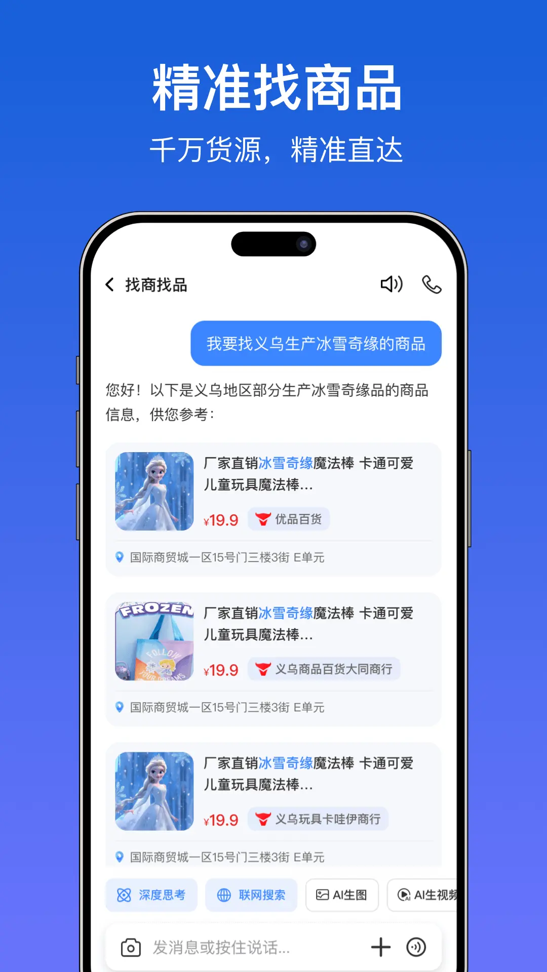 世界义鸟APP是一款完美融合外贸电商+AI智能技术的多功能AI工具。世界义乌官网版内置国内首屈一指的AI大模型,主要功能包括AI智能助手、实时生意通、高效工作流以及精准找商品等,通过强大的AI技术帮助从事外贸工作的朋友带来很大的帮助,世界义鸟安卓版为大家减少了很多繁琐的工作!