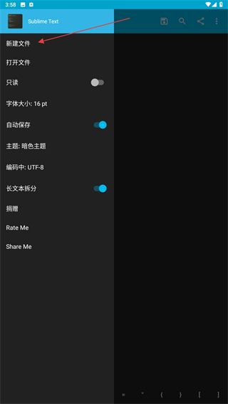 1、打开sublime的应用软件,在首页内点击左上角三个横线的图标。