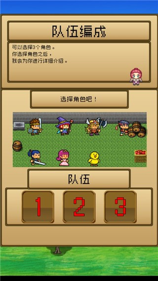 1、进入勇者VS恶龙后,玩家只需通过一段对话后就可以开始组建队伍,建议选择第一排前三个,勇者、战士、魔法师,能打能抗。