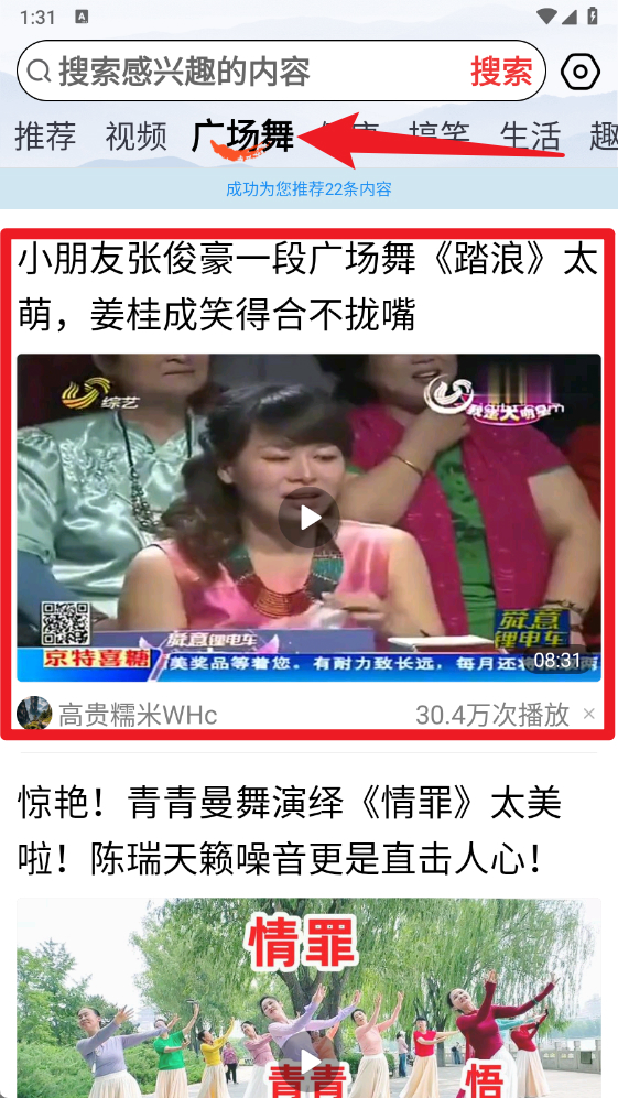 4、在广场舞栏目中,平台会推荐舞蹈视频与相关资讯,让喜爱广场舞的用户找到兴趣内容,边看边学,提升生活乐趣。