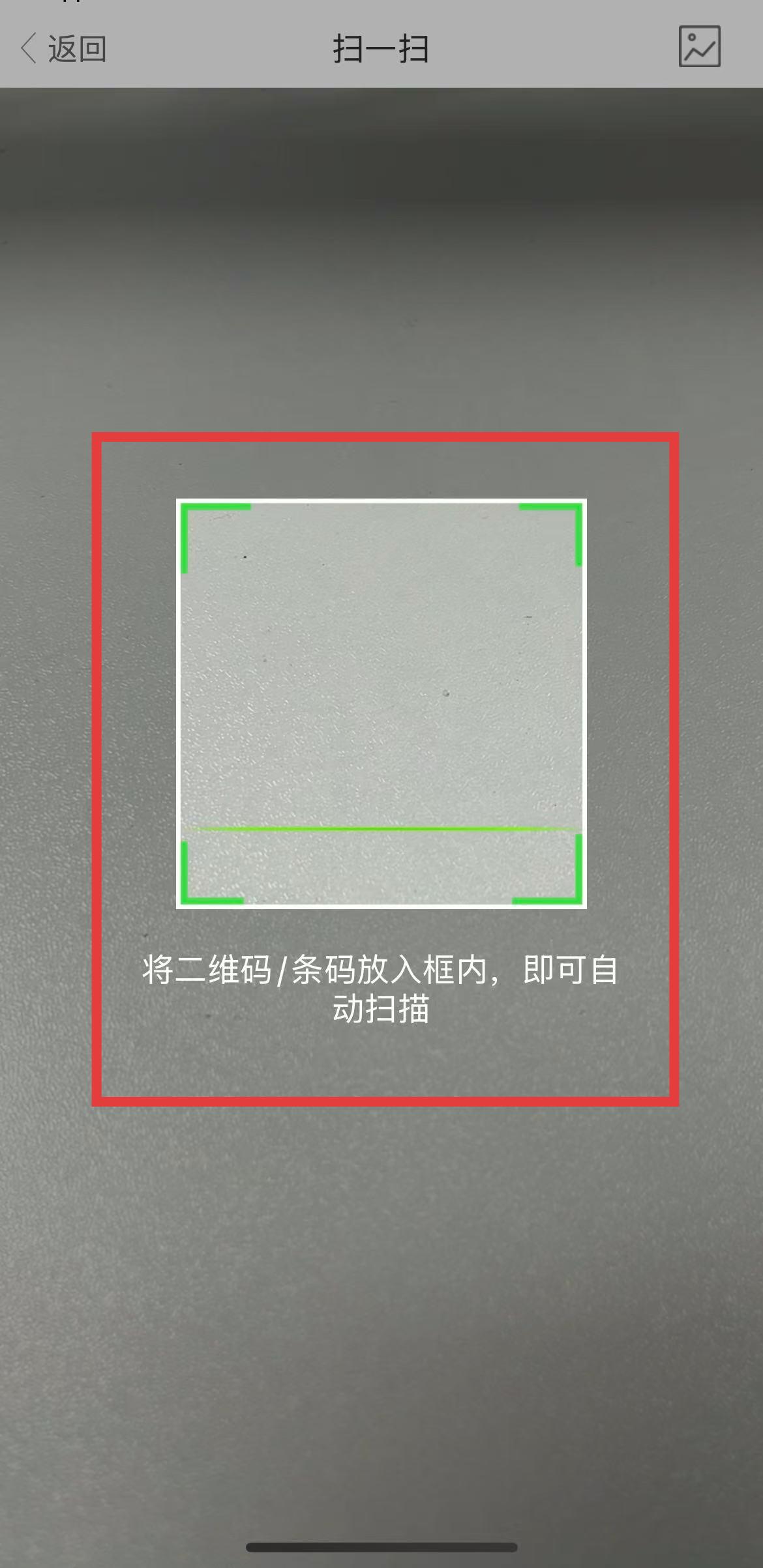 3、进入扫码界面后,将需要扫描的二维码或者条码放入屏幕中间的绿色扫描框内,APP会自动识别并完成扫码操作,获取相关信息。