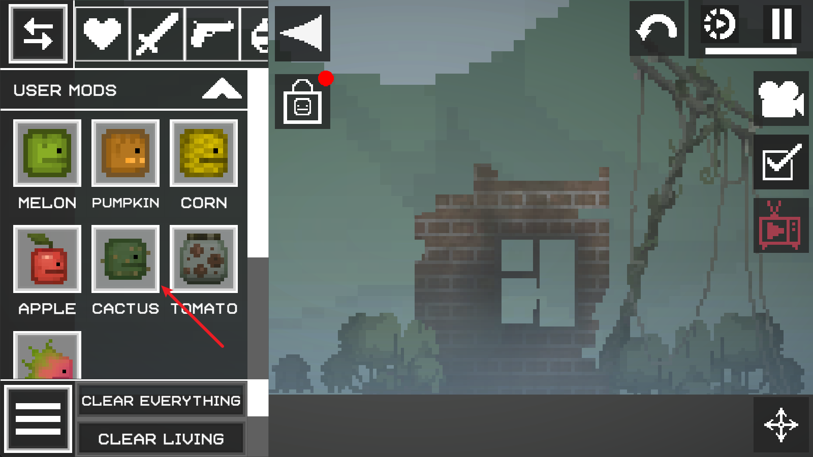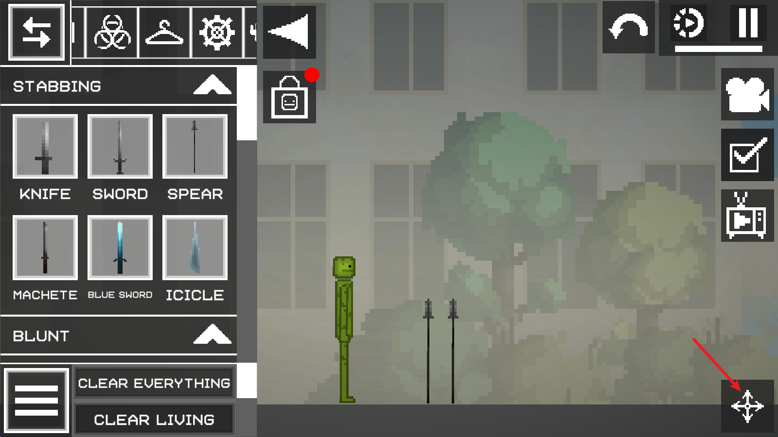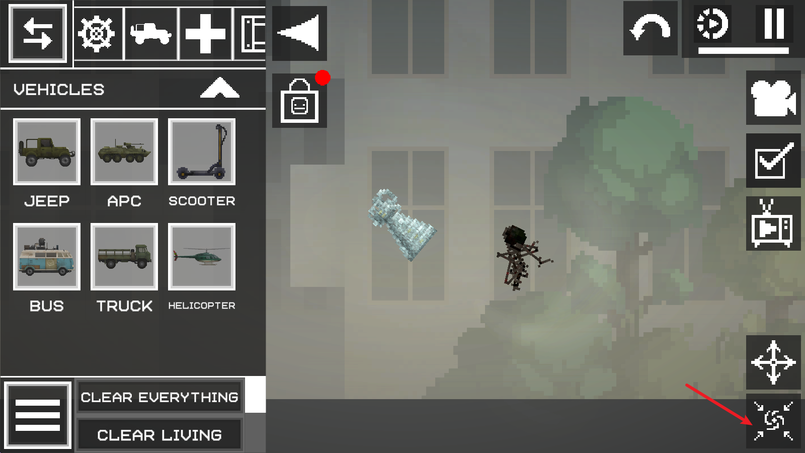 2、进入游戏如图,点击左上角菜单按钮,添加两个物品在地上;