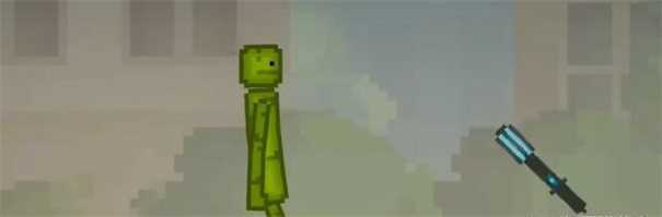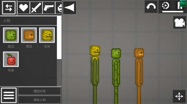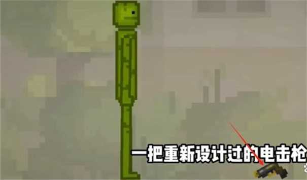 5、如图,可看到西瓜人物手里已经拿着枪了,点击按钮可以进行射击,以上就是让人物拿枪的教程了。