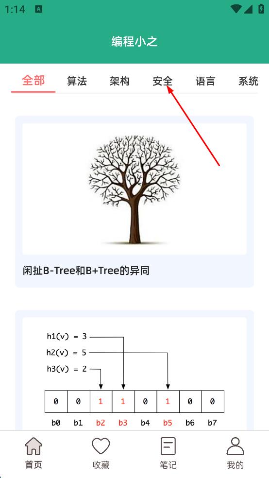 2、进入编程小之首页,在页面上方的分类栏中,点击安全选项。
