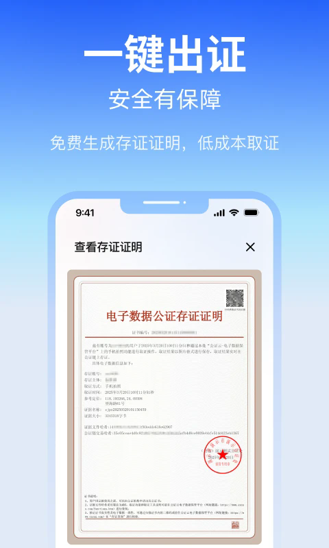 3、合作公证处一键出证,赋予证据法律效力。