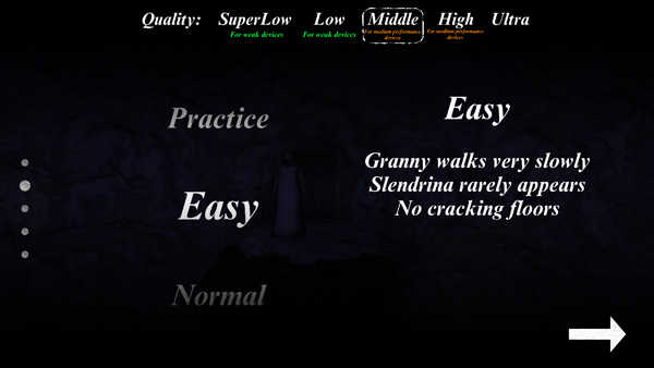 1、打开恐怖奶奶中文版1.8手游,点击play开始,选择游戏难度,以及游戏画质;
