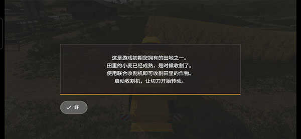 ①待到庄家长成,收获的时间就到了。E键进入前方的收割机,将收割机和前方的割台拖挂起来。