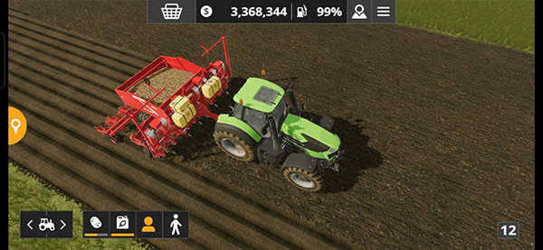 ③V键降下播种机,B键开启播种机,然后将拖拉机开进前方耕耘过的农田开始播种即可。