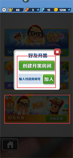五、点击好友开黑,选择输入对战房间号加入或创建开黑房间
