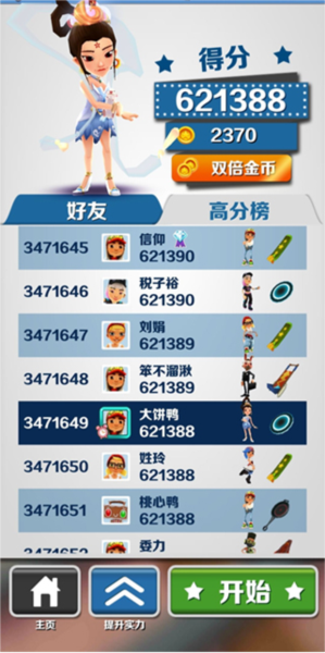 一、首先打开地铁跑酷游戏,点击首页右上角的排行榜