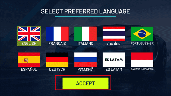1.打开并进入游戏,需要选择你熟悉的语言,选中其中一个后点击“ACCEPT”。