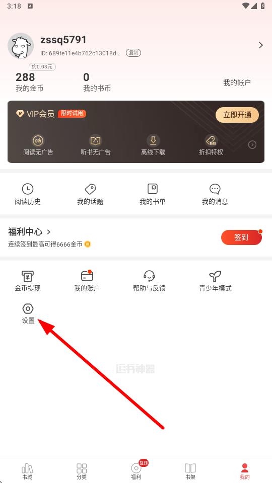 1、打开追书神器APP,点击底部导航栏我的,进入个人页面。