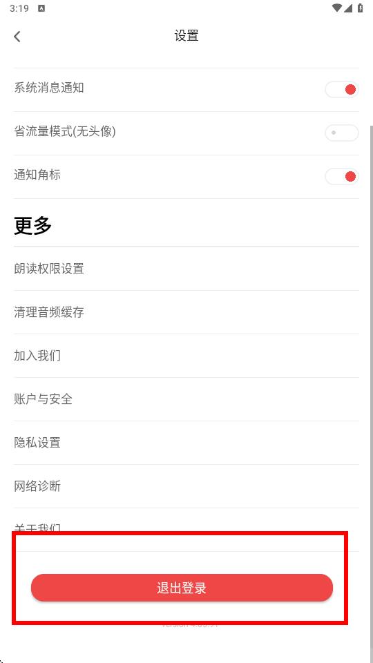 3、在设置界面下滑至底部,点击红色的退出登录按钮,即可退出账号。