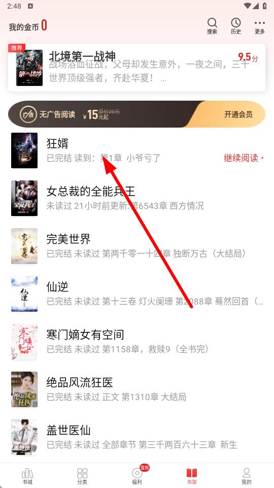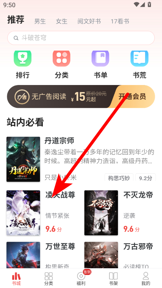 1、在追书神器书城页面,点击要分享的小说,进入小说详情界面。