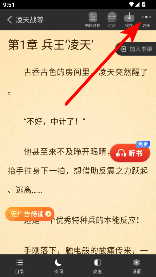 3、在小说阅读页面,点击更多选项,展开功能菜单。