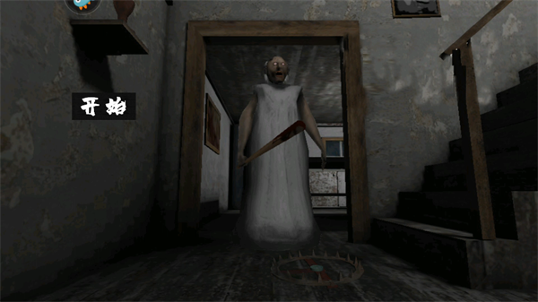 游戏刚开始玩家是在房子的第二层房子里面睡觉,然后醒来以后会发现房门紧闭。玩家自己是不能打开房门的,因此就需要老奶奶的帮助。游戏中起床以后会看到一个桌子,只要将桌子上的花瓶拿起来念动咒语,让后踢到桌子老奶奶就会迅速赶来,在此之前我们要躲在床底下或者柜子里面,以免被恐怖奶奶发现。