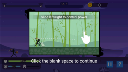 1.滑动屏幕射出手中的武器,滑得越快敌人越菜。