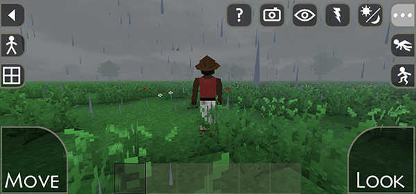 7、右上角的功能按钮分别可以控制角色的视角、控制场景的天气等,我们要做的就是在这个地图中存活下去。