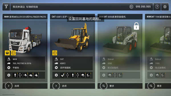 每款车种都有自己特殊功能,初始只提供给一辆装料吊车给玩家练手,后续会持续解锁车种,解锁了车辆并不意味着你就拥有了它,你还需要努力的挣到足够多的Money之后去购买它。