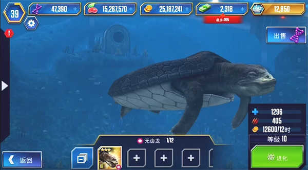 进化:进化是恐龙的一个提升手段,当前阶段的等级提升到最高的时候可以进行操作。需要玩家使用同类的恐龙来完成,进化之后恐龙的等级上限会提升,而且饱食度方面会直接增加到最高。所以在拥有足够的条件下,进化也是一个不错的选择。