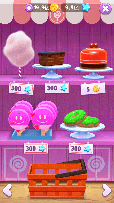 我们能在图中看到不同的食物有不同的购买方式。图中葡萄要用25个金币买。金币一般可以在飞行篮子或每日任务中可以获取一点,还有每天三次难度不同的拼图也可以获取到几百个。图中的蓝莓蛋糕要用星星值来购买。星星值只能在飞行篮子中获取。然后图中的草莓购买方式就很简单了,只要观看一个30秒的视频就可以获得一个草莓。