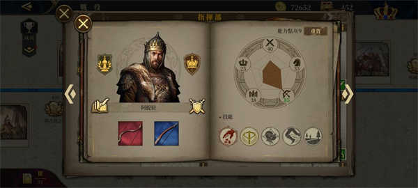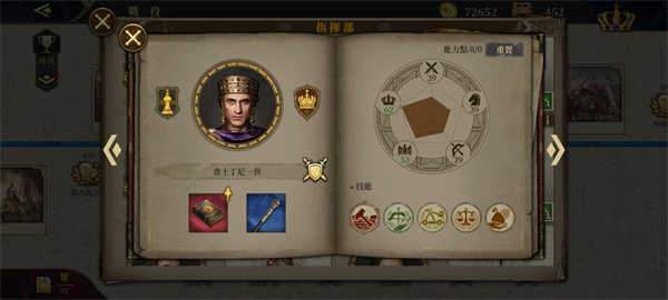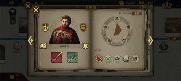 8.点击招募将领,将领属性分为步兵能力、骑兵能力、弓兵能力、内政能力和士气。内政主要影响城市产出加成以及任命为行政官时国家外交、内政加成等。将领通过升级军衔,可以获得能力点数来强化将领的各个属性(可重置),和解锁新的技能槽和士兵槽。传奇将领可通过升级爵位,来提高部队伤害和减伤效果。并且传奇将领都有与其对应的英雄传奇章节和专属装备,专属装备可以加成专属兵种和技能;