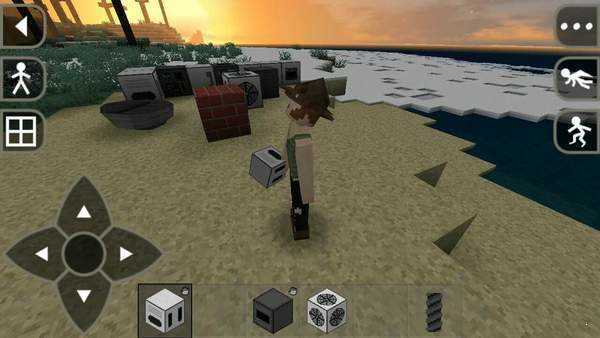 7、右上角的功能按钮分别可以控制角色的视角、控制场景的天气等,我们要做的就是在这个地图中存活下去。