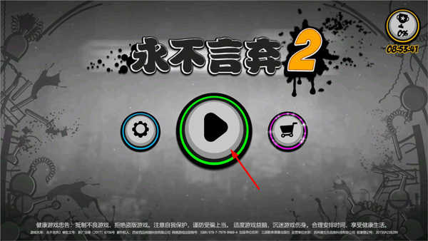 1、玩家打开永不言弃2游戏,进入主页面,点击开始游戏按钮;