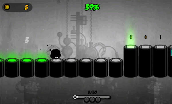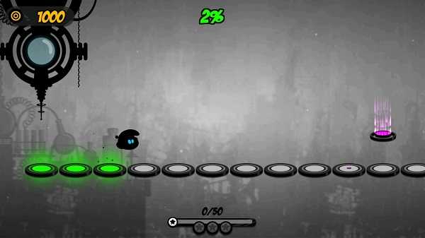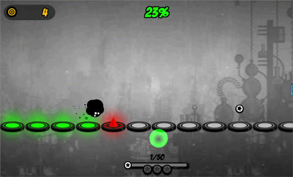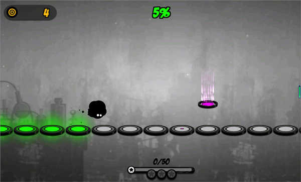 当然跳跃的节奏都是遵循BGM 来的,只要节奏踩对了,那么小墨点就可以以一个很快的速度前进了。