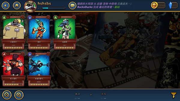收藏:进入收藏页面玩家可查看已有的所有角色和技能,在初始进入的时候游戏是采用全部观看的设置所以难免图片过小看不清,点击左下角的加减镜就可以放大图片或者缩小。点击想查看的角色就可以查看角色的全部属性了。
