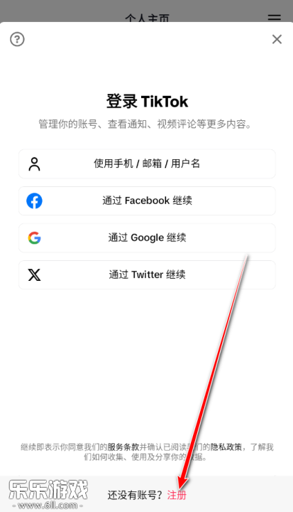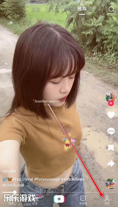 1、首先你需要在乐乐游戏网下载安装tiktok,进入tiktok,点击右下角的主页