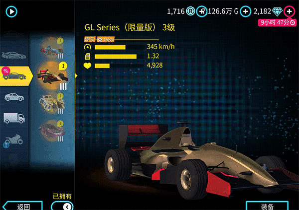 Top3GLSeries(限量版):涂成金色的赛车。速度比较快之外没什么亮点。