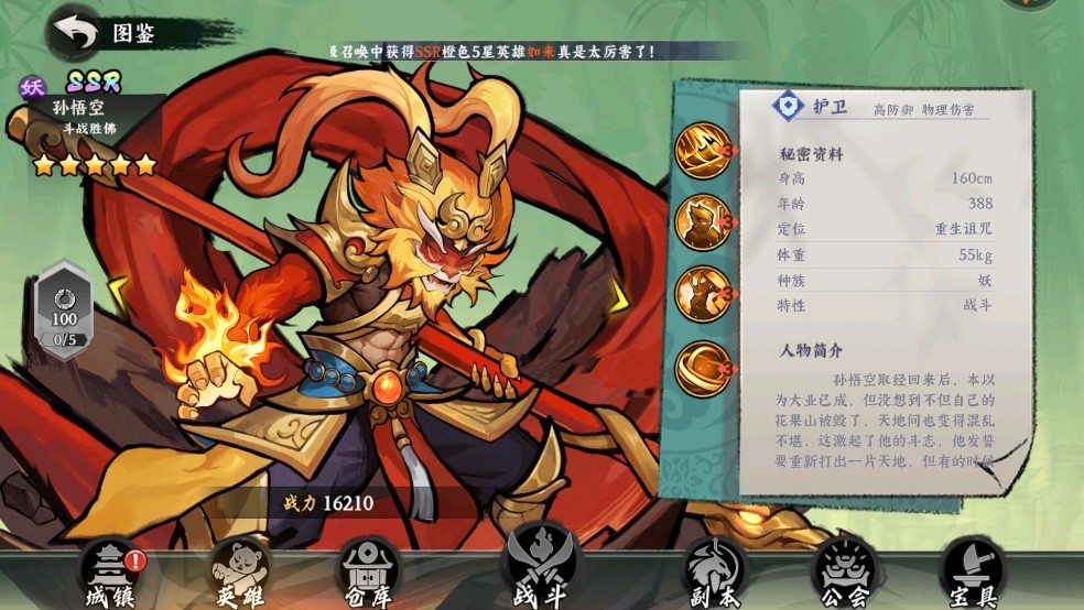 4、孙悟空攻击附带流血效果,且在造成伤害的同时自身可恢复生命,机动性极高,适合压制高回复型敌人,具有良好的追击与拉扯能力。