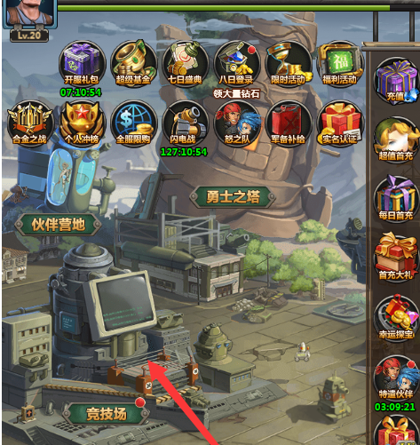 首先我们要在游戏主城页面点击地图里面的竞技场