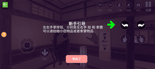 3.然后召唤小忍走向浴缸的方向,玩家需要一手指着小忍,一手指向浴缸示意她进去。